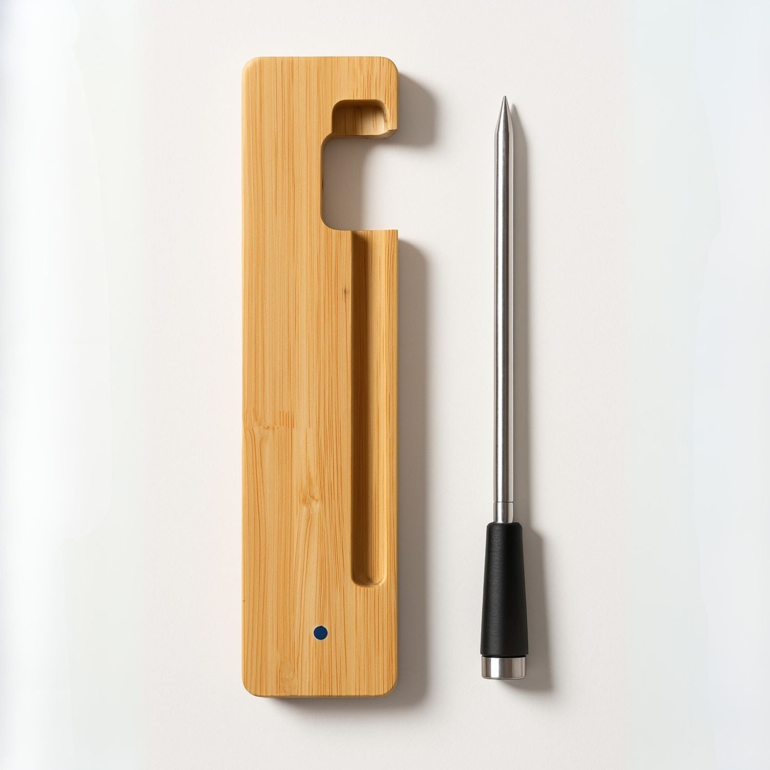Onze thermometer meet zowel de interne temperatuur van het vlees als de omgevingstemperatuur van de oven, grill of smoker. De gegevens worden real-time naar je smartphone gestuurd via Bluetooth, zodat je precies weet wanneer je vlees perfect gegaard is – zonder constant te hoeven checken.